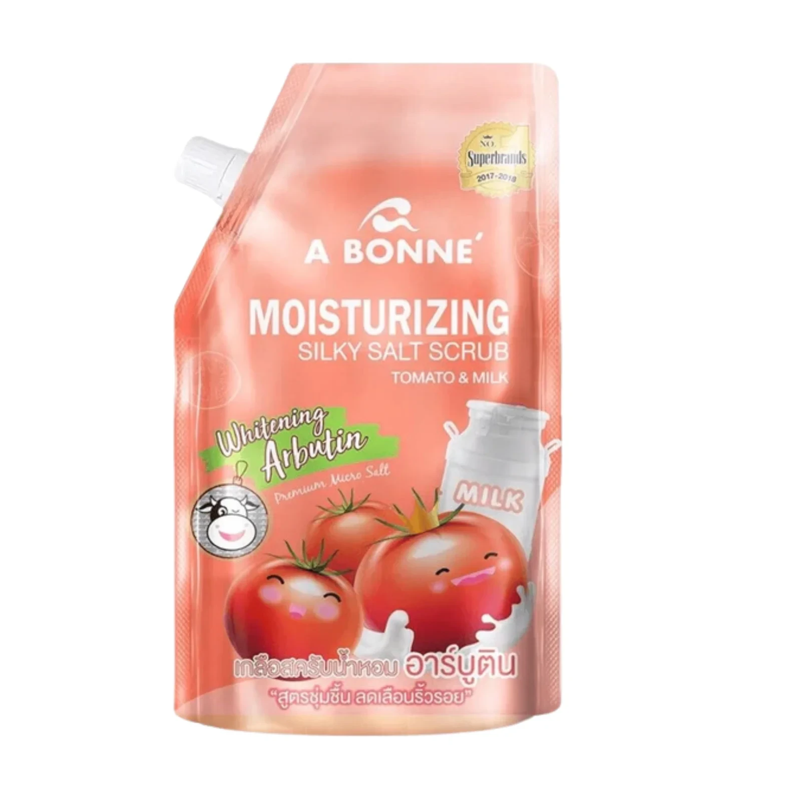 A Bonne Moisturising Silky Salt Scrub, Tomato and Milk is a gentle exfoliating body scrub designed to cleanse, brighten, and nourish the skin. Enriched with tomato extract and milk, this formula helps remove dead skin cells, improve skin texture, and reveal smoother, softer, and more radiant skin.