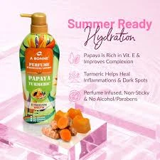 A Bonne Papaya Turmeric Whitening Lotion is a nourishing body lotion designed to brighten skin, improve texture, and provide deep hydration. Enriched with papaya and turmeric extracts, this lightweight formula helps reduce dullness, promote a natural glow, and keep the skin soft and smooth.