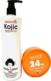 Smooth Kojic Acid Body Lotion is a luxurious daily‑use body moisturiser formulated to deeply hydrate the skin while helping to brighten and even out skin tone. Infused with kojic acid, a skin‑brightening ingredient widely used in skincare, this lotion works to reduce the appearance of dark spots, pigmentation, and dullness when applied regularly and left on the skin to absorb.