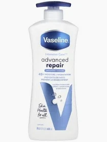 Vaseline Advanced Repair Body Lotion 600ml is a clinically proven intensive moisturizer designed to heal very dry, rough, and damaged skin. Enriched with Vaseline Jelly micro-droplets and glycerin, it deeply penetrates the skin to restore moisture and strengthen the skin barrier.